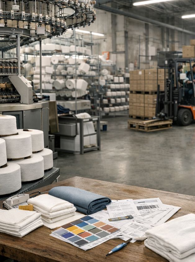 Each order follows a controlled, end-to-end process—from yarn and fabric development to processing, stitching, finishing, inspection, and packaging. This systematic approach ensures full traceability, consistent quality, high customisation flexibility, and minimal waste, while strictly adhering to approved standards.